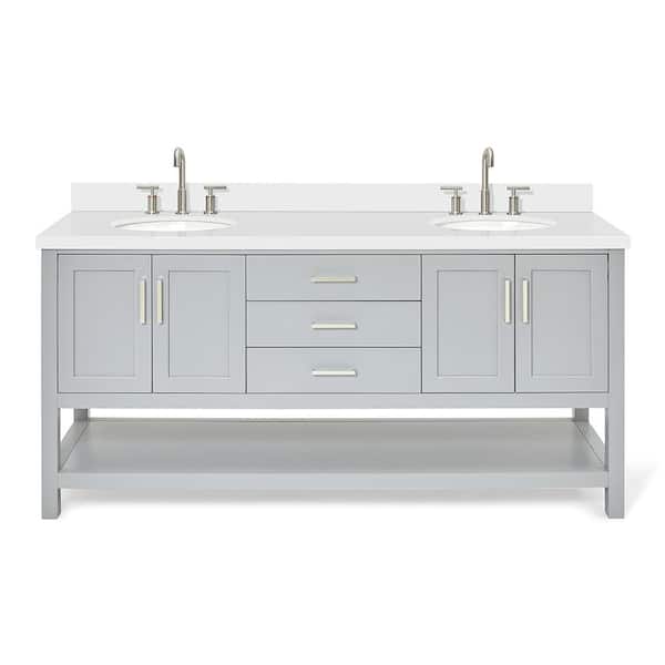 Magnolia 72 in. W x 22 in. D x 36 in. H Bath Vanity in Gray with White Pure Quartz Vanity Top with Basins