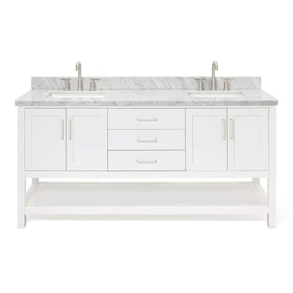 Magnolia 72 in. W x 22 in. D x 36 in. H Bath Vanity in White with White Carrara Marble Vanity Top with Basins