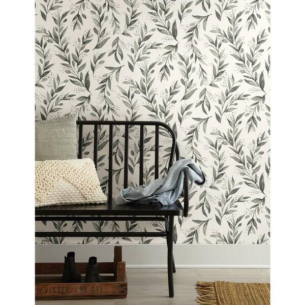 OLIVE BRANCH GRAY NON-WOVEN PEEL & STICK WALLPAPER ROLL