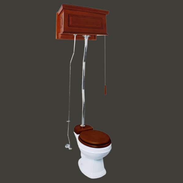 Mahogany High Tank Pull Chain Toilet 2-piece 1.6 GPF Single Flush Round Bowl Toilet in. White Seat Not Included