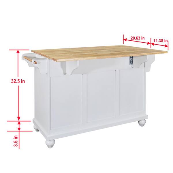 Mahogany Rubber Wood Kitchen Cart with Drop Leaf, 1 Door Cabinet, Two Drawers, Spice Rack and Towel Rack