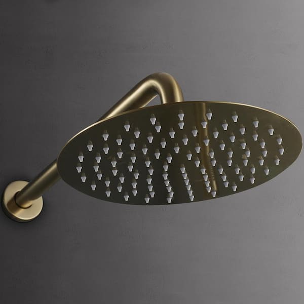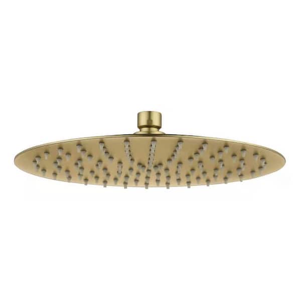 1-Spray Patterns 12 in. Wall Mount Fixed Shower Head Round Ultra-Thin Air Booster Water-Saving Spray in Brushed Gold