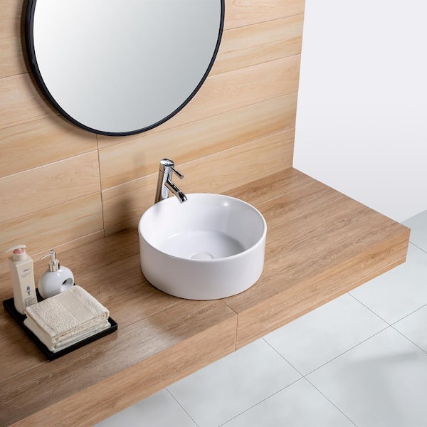 16.13 in. Ceramic Vessel Sink Topmount Bathroom Sink Basin in White