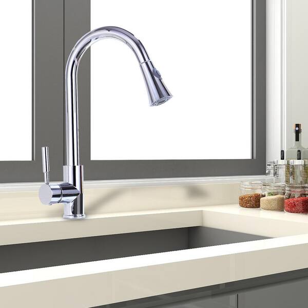 16 in. 360° Spout Swivel Stainless Steel Single-Handle Pull Down Sprayer Kitchen Faucet in Chrome