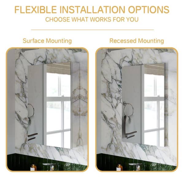 16 in. W x 24 in. H Right Swing Rectangular Aluminum Medicine Cabinet with Mirror Blum Hinges