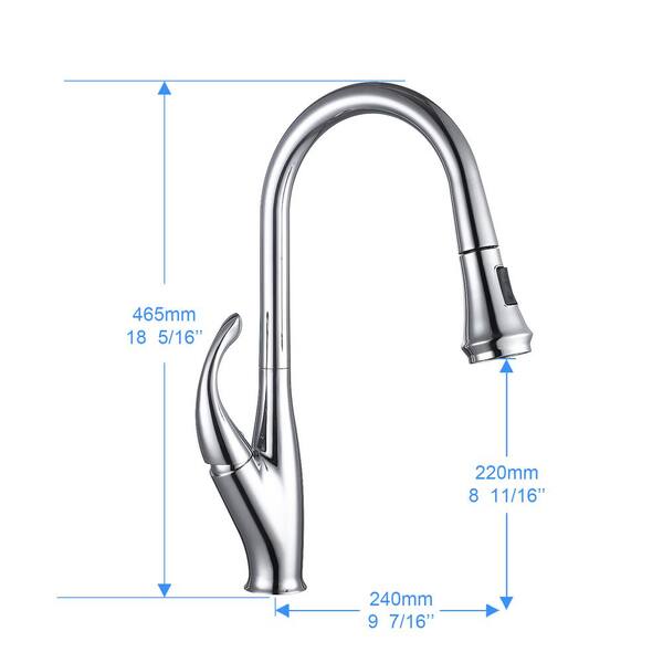 18.5 in. 360° Spout Swivel Single Handle Pull Down Sprayer Kitchen Faucet in Chrome
