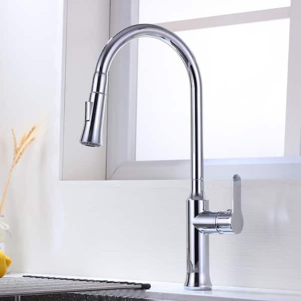 18.7 in. 360° Spout Swivel Stainless Steel Single-Handle Pull Down Sprayer Kitchen Faucet in Chrome