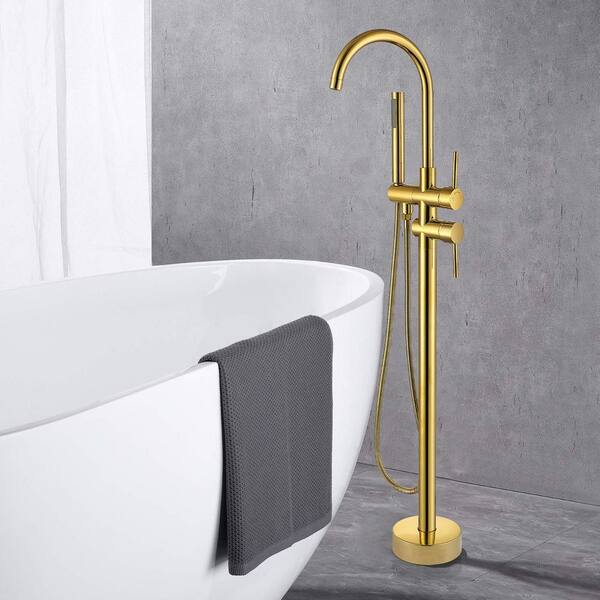 2-Handle Floor Mounted Residentail Freestanding Tub Faucet with Hand Shower in. Titanium Gold