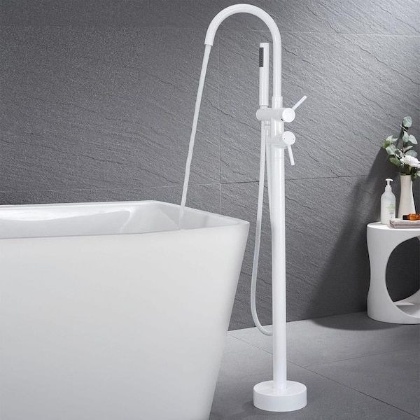 2-Handle Residential Freestanding Tub Faucet with Hand Shower in Sliver White