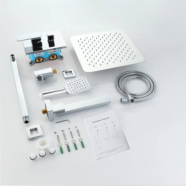 2-Spray Patterns with 2.5 GPM 10 in. Wall Mount Dual Shower Heads with Body Spray in Chrome