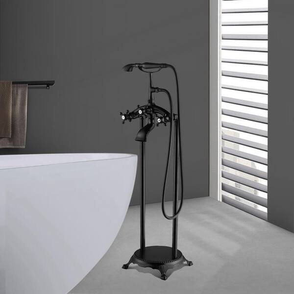 3-Handle Floor Mount Claw Foot Freestanding Tub Faucet with Hand Shower in Matte Black
