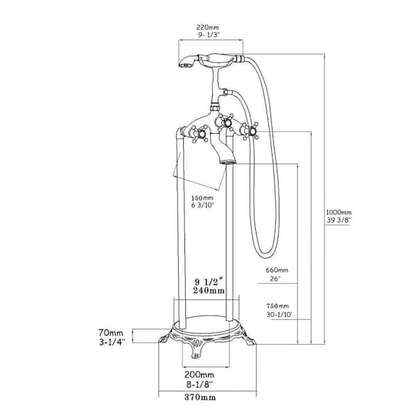 3-Handle Floor Mount Claw Foot Freestanding Tub Faucet with Hand Shower in Oil Rubbed Bronze
