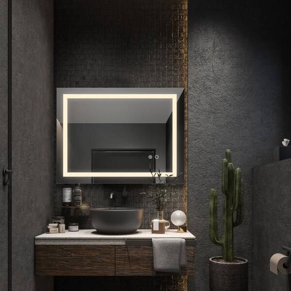 32 in. W x 24 in. H Rectangular Frameless Anti-Fog Wall Mounted LED Light Bathroom Vanity Mirror in Silver