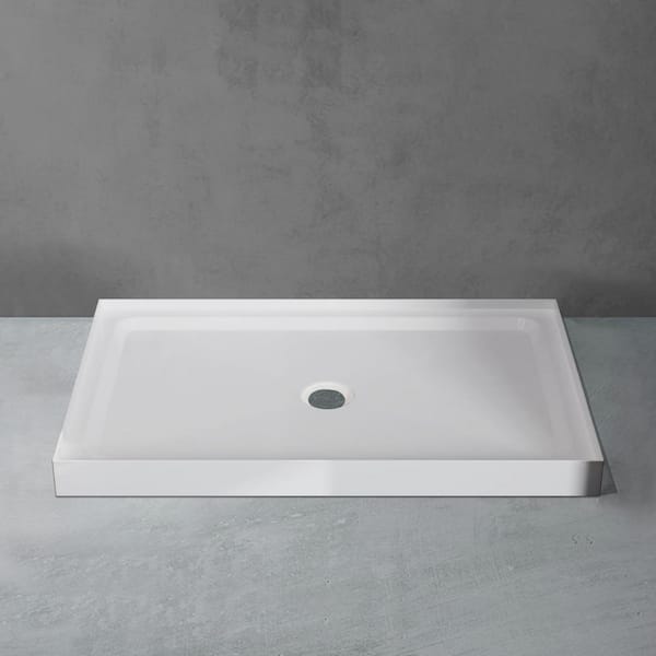 48 in. L x 32 in. W Alcove Shower Pan Base with Center Drain in White