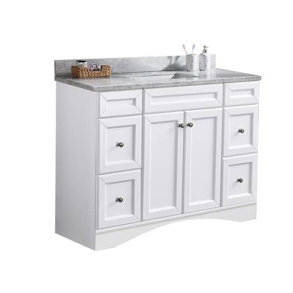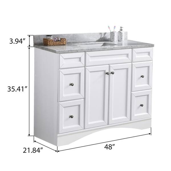 48 in. W x 21.84 in. D x 39.35 in. H Bath Vanity in White with White Marble Top and Basin