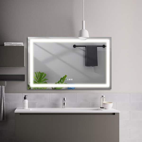 48 in. W x 36 in. H Rectangular Frameless Anti-Fog Wall Mounted LED Light Bathroom Vanity Mirror in Silver