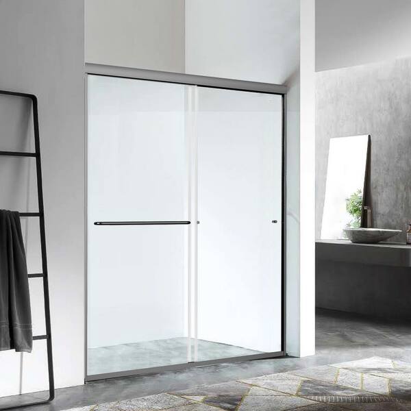 54 in. W x 72 in. H Sliding Framed Sliding Shower Door with Towel Bar in Black and Clear Glass