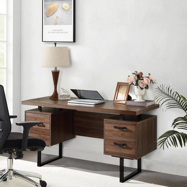 59 in. Rectangular Brown MDF 3 Drawer Computer Desk for Home Office