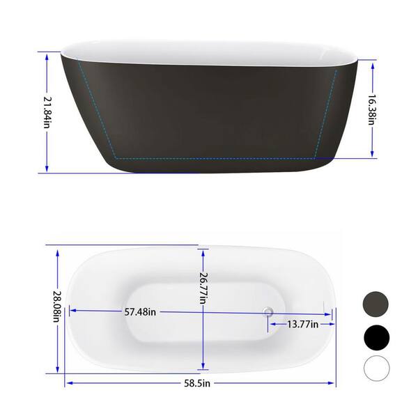 59 in. x 28 in. Acrylic Freestanding Soaking Bathtub in gray with Drain and Overflow