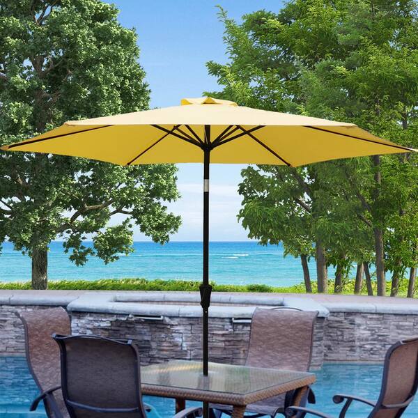 8.8 ft. Aluminum Patio Market Umbrella with 42 Pounds Base, Push Button Tilt and Crank Lift in Yellow