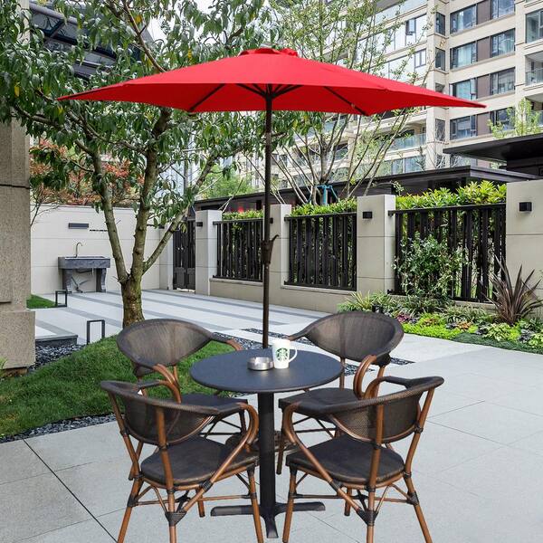 8.8 ft. Aluminum Patio Market Umbrella with Resin Base, Push Button Tilt and Crank Lift, Red
