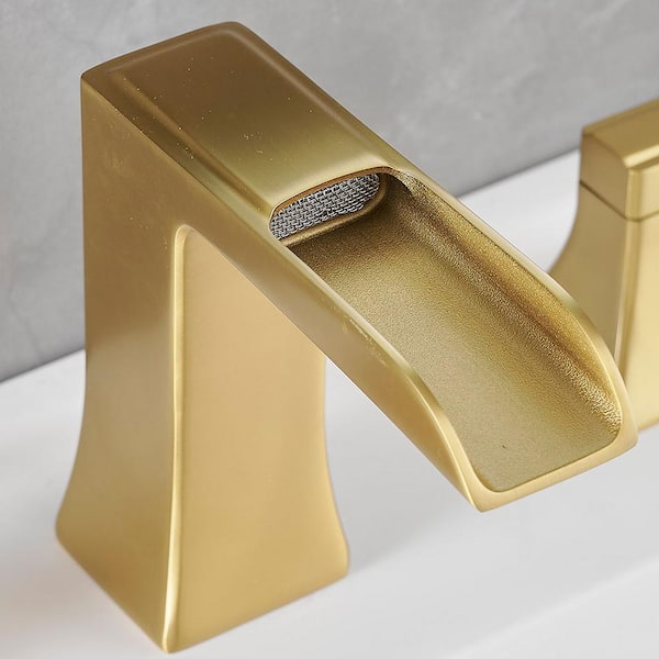 8 in. Widespread Double Handle Bathroom Faucet with Drain Kit Included in Brushed Gold