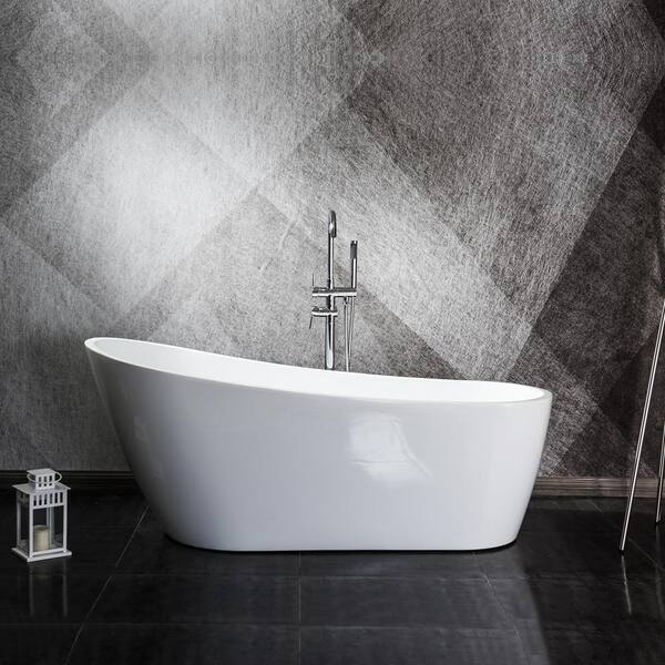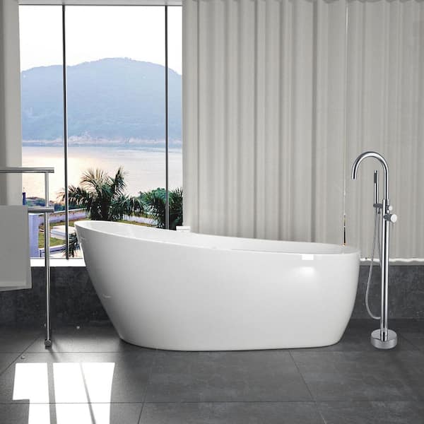 Contemporary Design 55 in. Freestanding Acrylic Flatbottom SPA Tub Bathtub in White