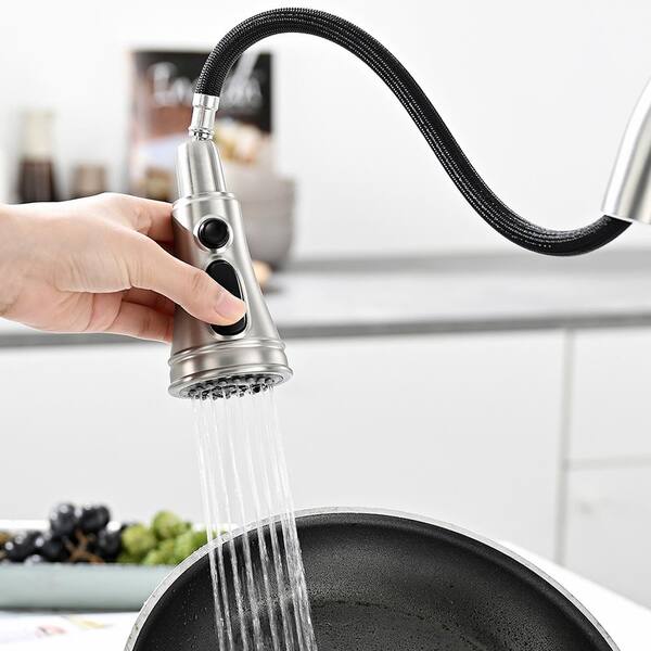 Double Handle Bridge Pull Down Sprayer Kitchen Faucet in Brushed Nickel
