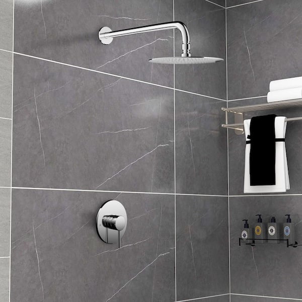 Single-Handle 1-Spray Wall Mount Shower Faucet 1.5 GPM with Pressure Balance in Chrome (Valve Included)