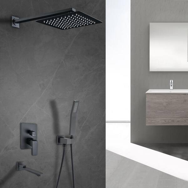 Single Handle 3-Spray Tub and Shower Faucet 2.5 GPM with 9.68 in. Shower Head in Matte Black (Valve Included)