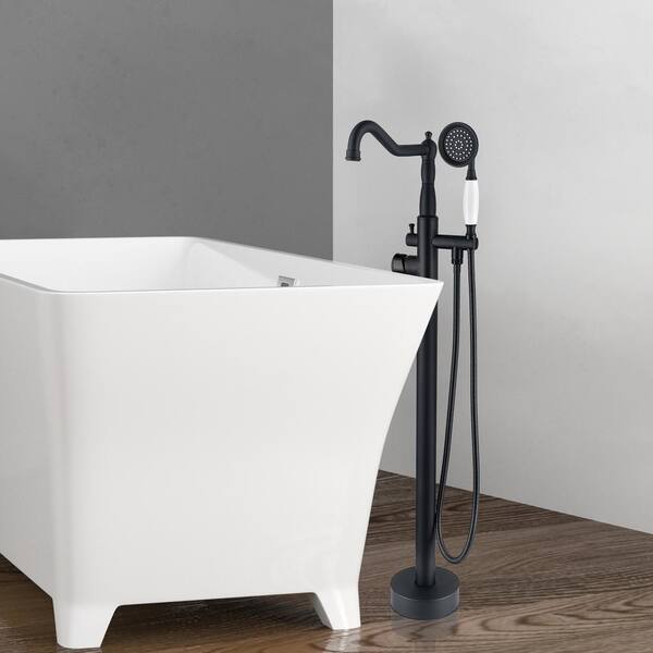 Single-Handle Classical Freestanding Bathtub Faucet with Hand Shower in Matte Black