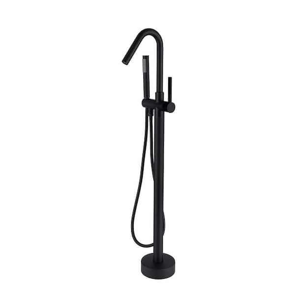 Single-Handle Freestanding Tab Faucet Bathtub Filter with Handheld Shower in Matte Black