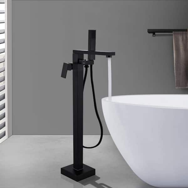 Single-Handle Freestanding Tub Faucet with Hand Shower Head in Matte Black