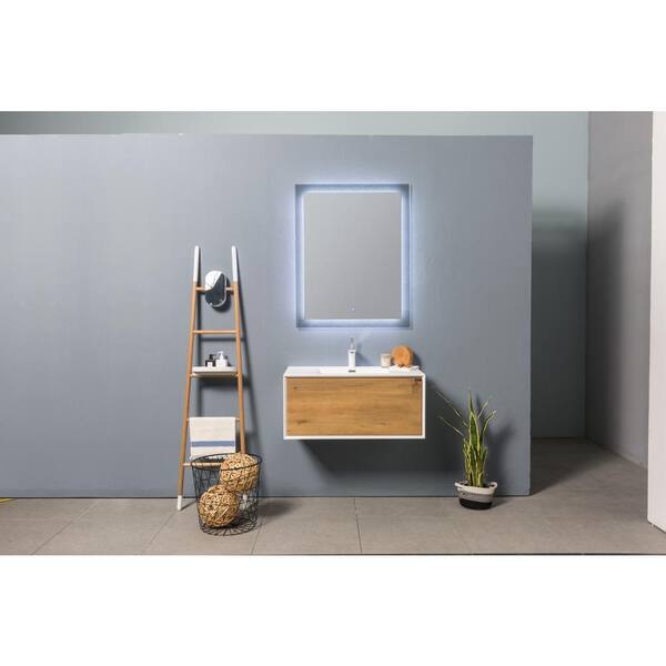Wall-Mounted 35.43 in. W x 19.09 in. D x 15.75 in. H. Bath Vanity in White with White Solid Surface Top with White Basin