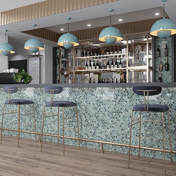 Majeste 4 in. x 6 in. Glossy Blue Glass Mosaic Fan Shape Wall and Floor Sample Tile (0.13 sq. ft./Piece) (1-Pack)