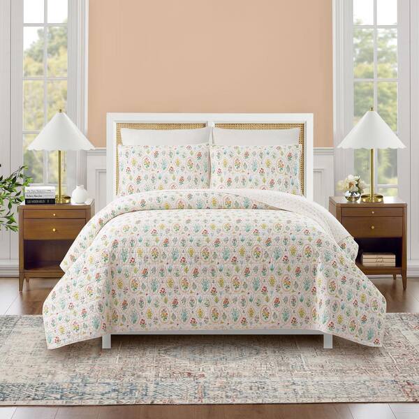 Floral Wallpaper 3-Piece Multicolored Cotton Full/Queen Quilt Set
