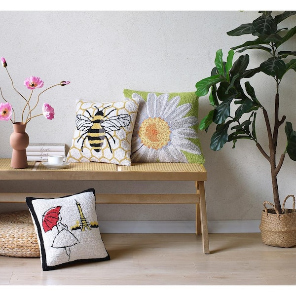 The Pillow Shoppe White Daisy Wool Hook 18 in. x 18 in. Throw Pillow