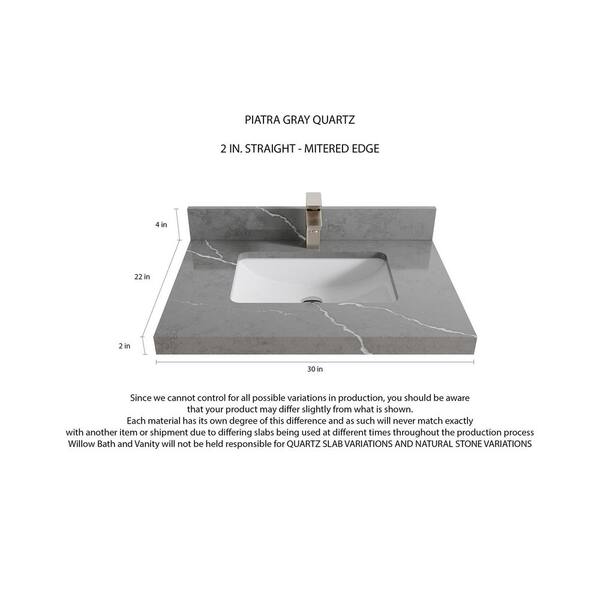 Malibu 30 in. W x 22 in. D x 36 in. H Bath Vanity in White with 2 in. Piatra Quartz Top