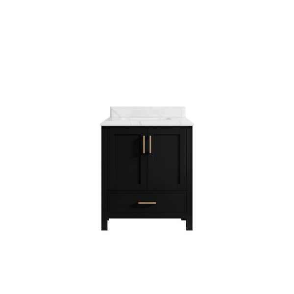 Malibu 30 in. W x 22 in. D x 36 in. H Single Sink Bath Vanity Center in Black with 1.5 in. Calcutta Laza Top