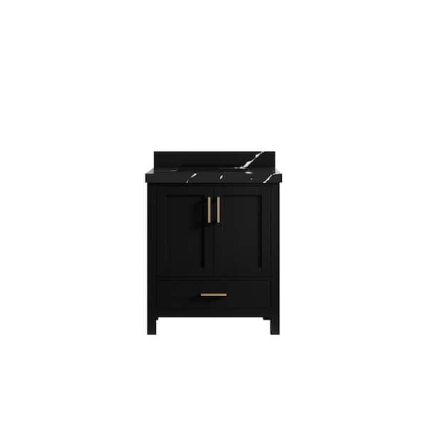 Malibu 30 in. W x 22 in. D x 36 in. H Single Sink Bath Vanity Center in Black with 2 in. Calcutta Black Top