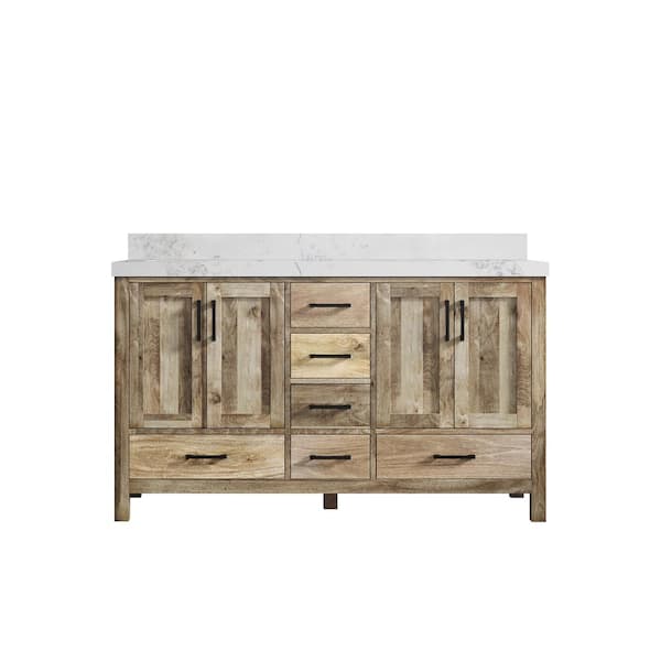 Malibu Mango 60 in. W x 22 in. D x 36 in. H Double Sink Bath Vanity in Natural with 2 in. Calacatta Nuvo Top