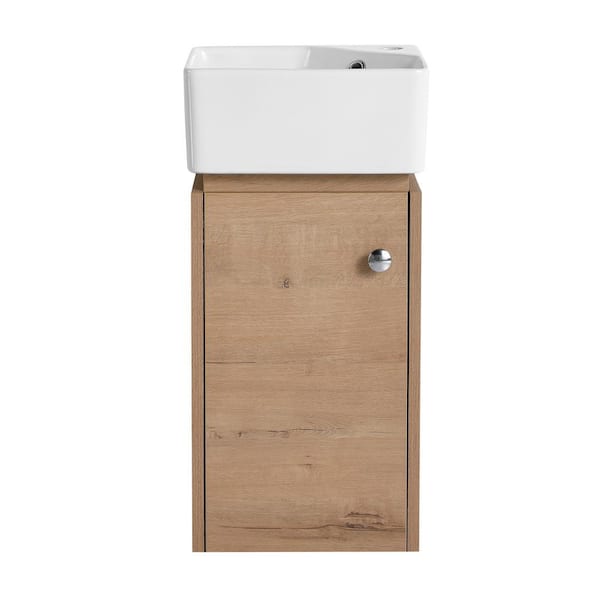 12 in. Wall-Mounted Single Brown Bath Vanity with White Ceramic Vanity Top Unassembled