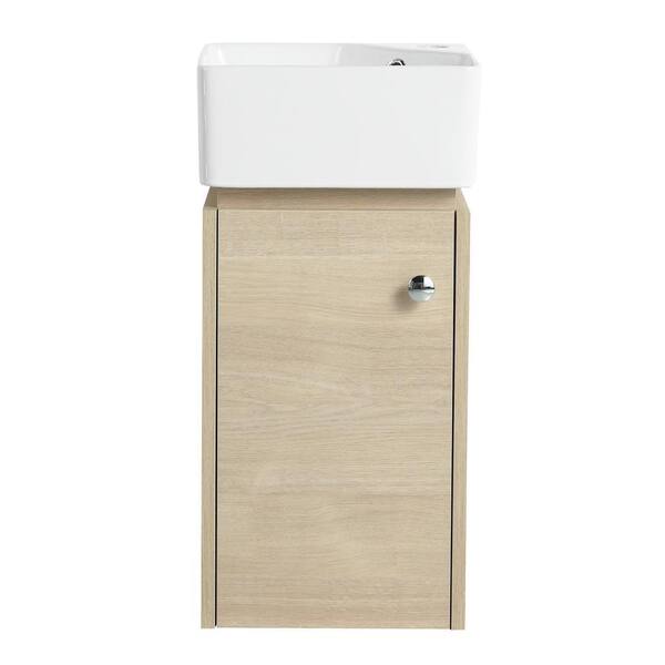 12 in. Wall-Mounted Single Oak Bath Vanity with White Ceramic Vanity Top Unassembled