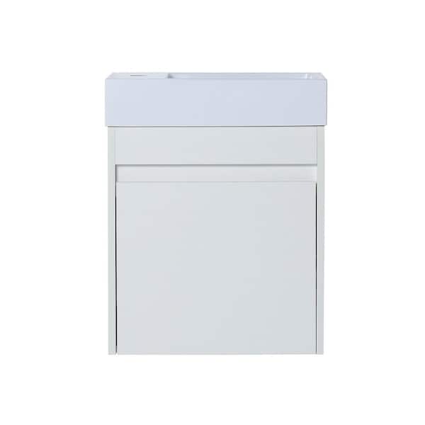 18 in. Wall-Mounted Single White Bath Vanity with White Resin Vanity Top Assembled