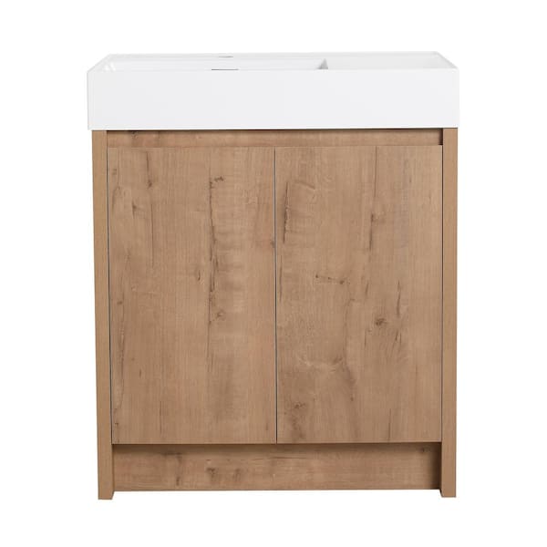 30 in. Freestanding Single Oak Bath Vanity with White Resin Top Unassembled