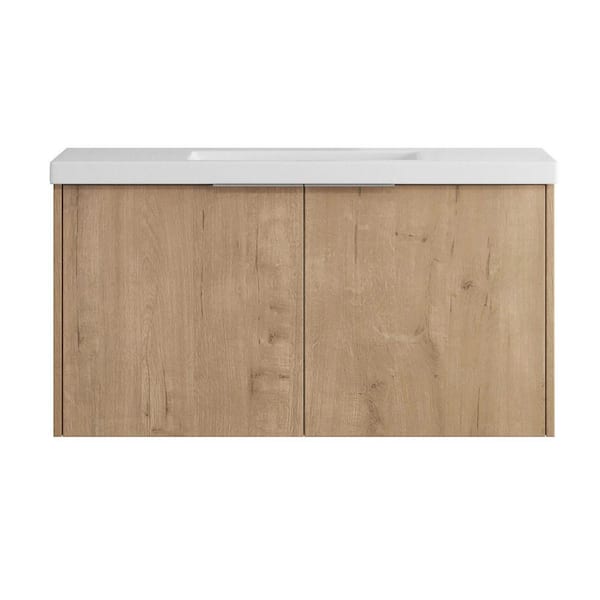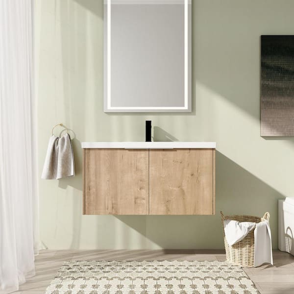 36 in. Wall-Mounted Single Oak Bath Vanity with White Resin Vanity Top Unassembled
