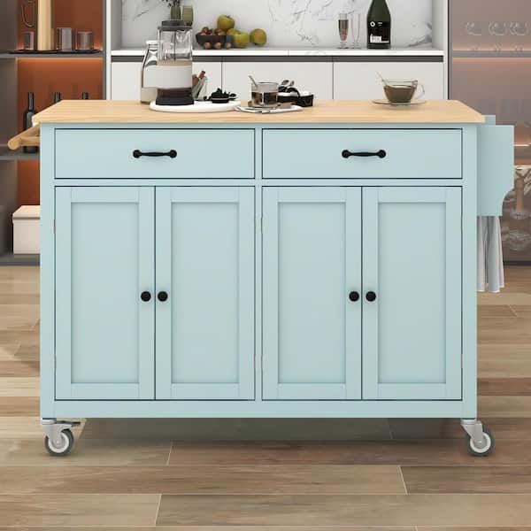 Mint Green Solid Wood Top 54.3 in. Kitchen Island with 4 Door Cabinet and 2 Drawers