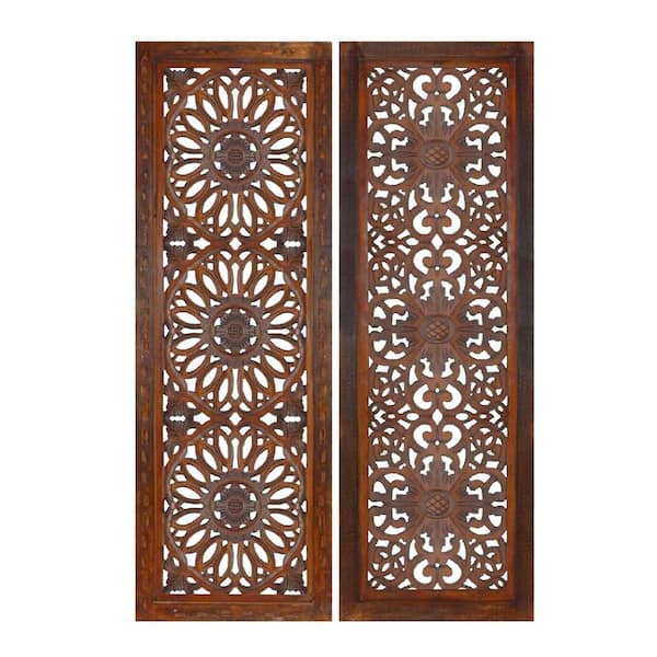 Mango Framed Wood Wall Art Panel Set Carving 2 Piece