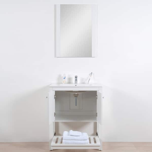 Manhattan 30 in. W x 18 in. D x 35 in. H Single Sink Bath Vanity in White with White Ceramic Top and Mirror