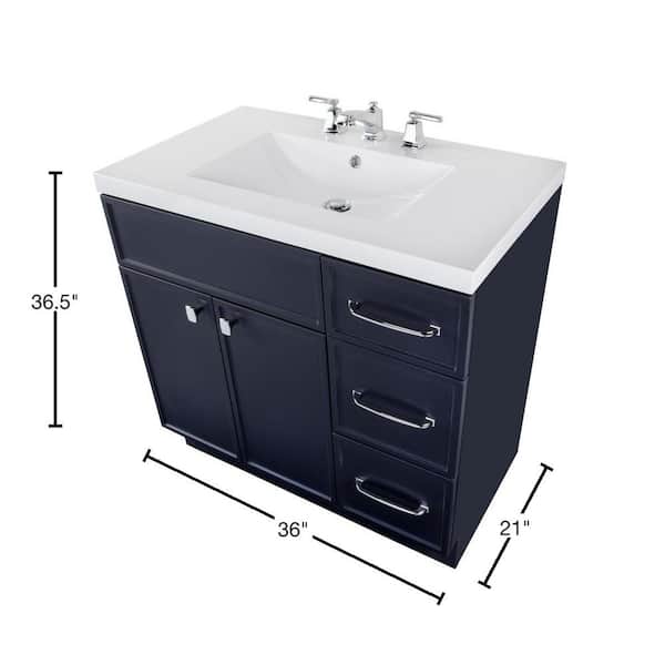 • 36"W x 21"D x 36-1/2"H bath vanity with durable cultured marbel